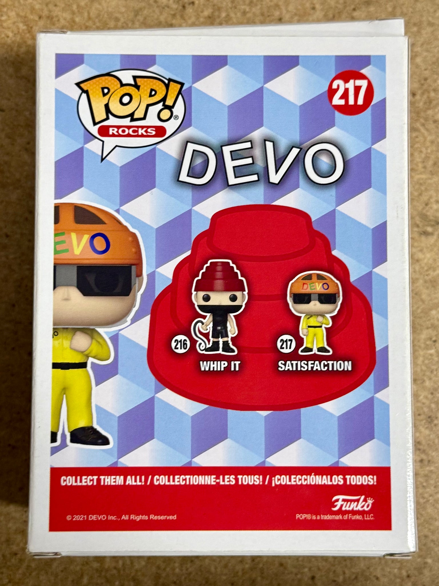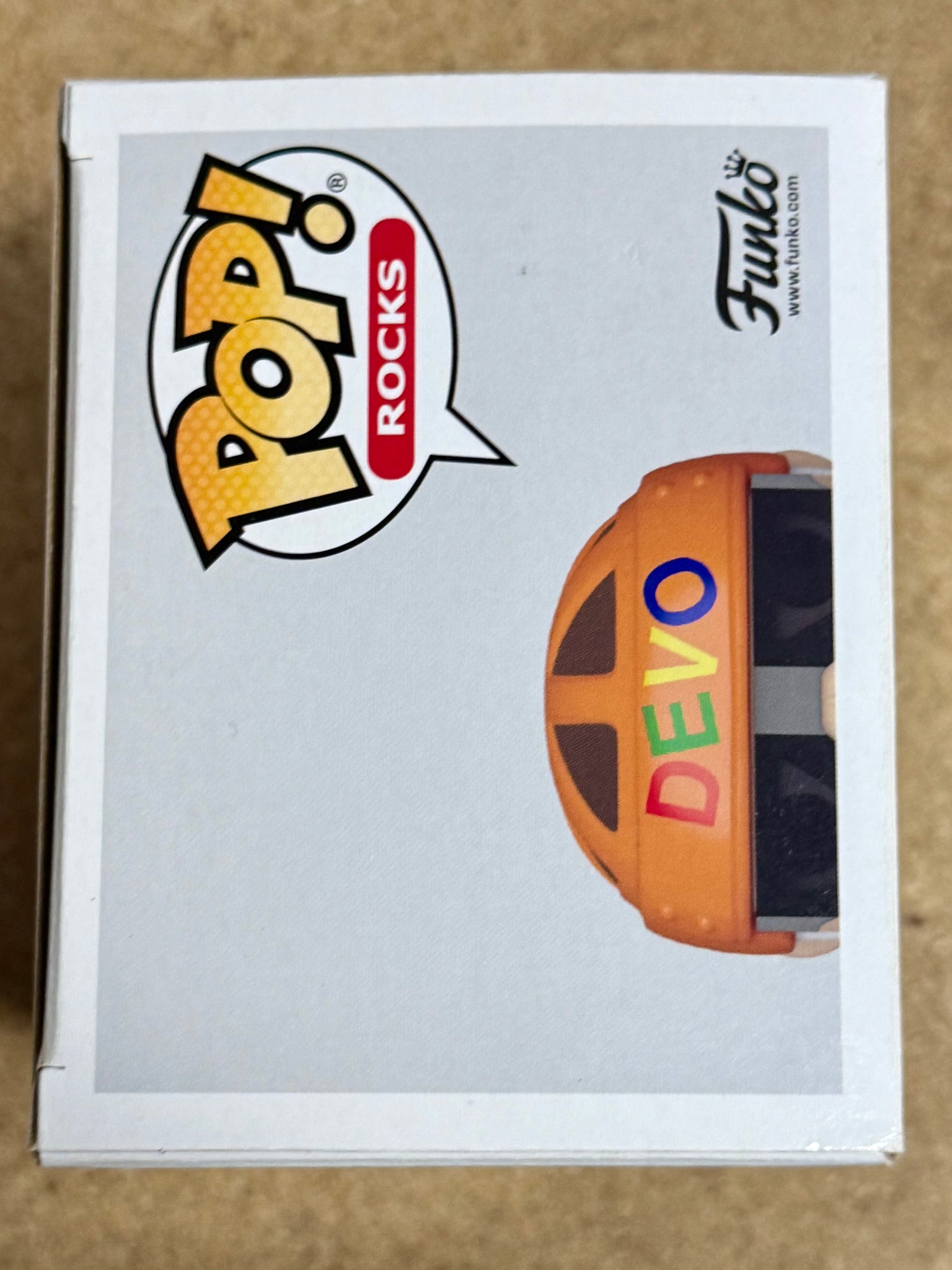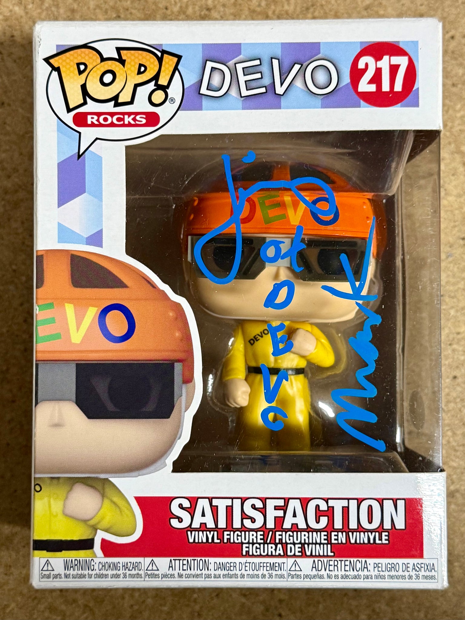 The figure is in excellent condition and displays beautifully, making it a standout piece for any music memorabilia or Funko Pop! collection. Signed DEVO items are becoming increasingly hard to find, especially featuring both core members on a single piece. Perfect for fans of DEVO, collectors of music autographs, or anyone looking to own a unique piece of 1980s music history.