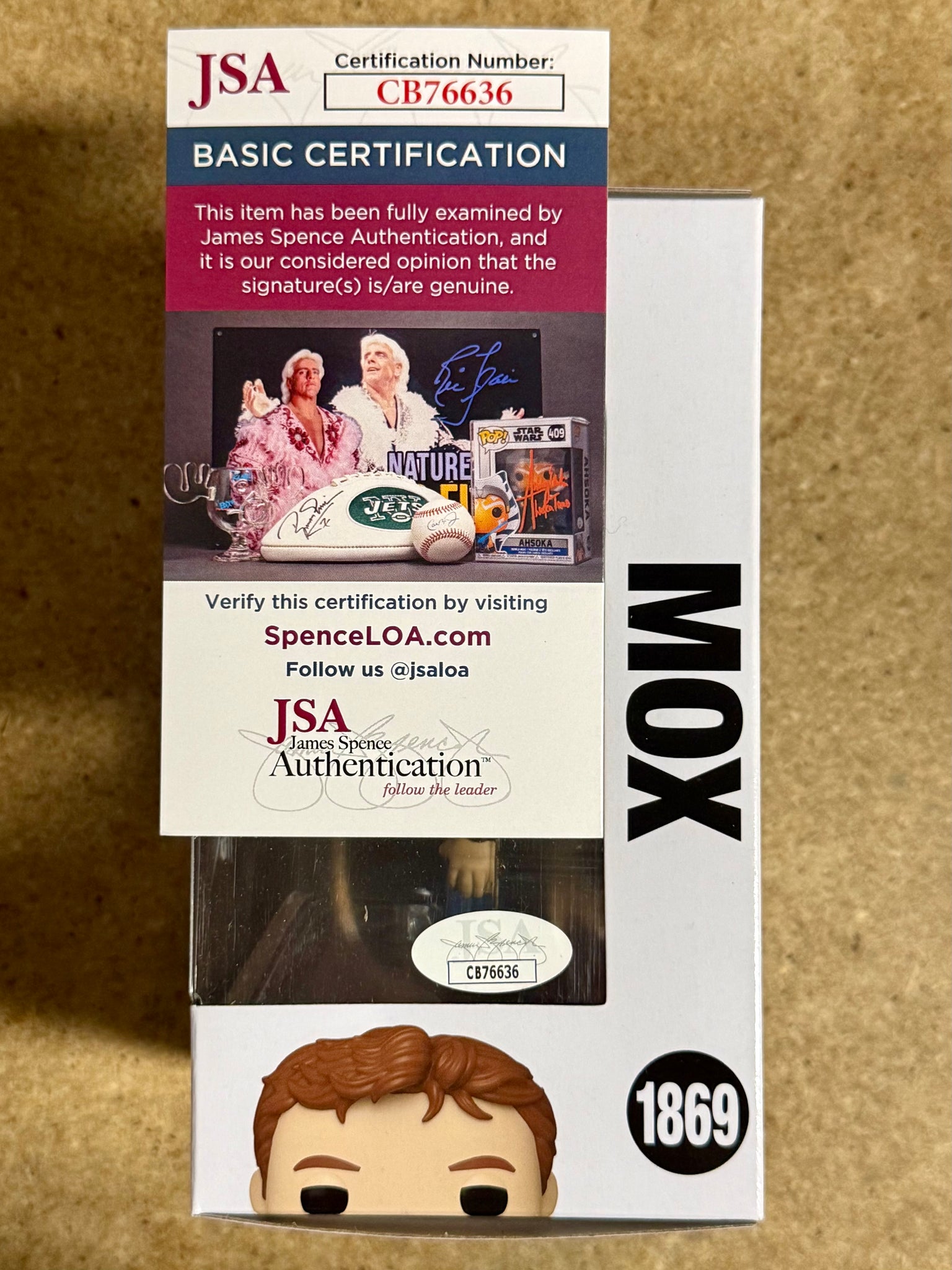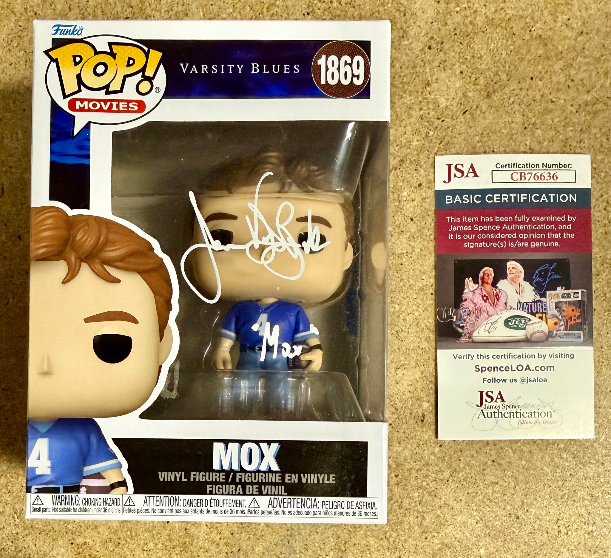 This listing is for a James Van Der Beek Signed Varsity Blues “Mox” Funko Pop! #1869 with JSA Certificate of Authenticity. This Pop! features Van Der Beek’s iconic character Jonathan “Mox” Moxon from the 1999 cult classic Varsity Blues, making it a standout piece for movie and autograph collectors.