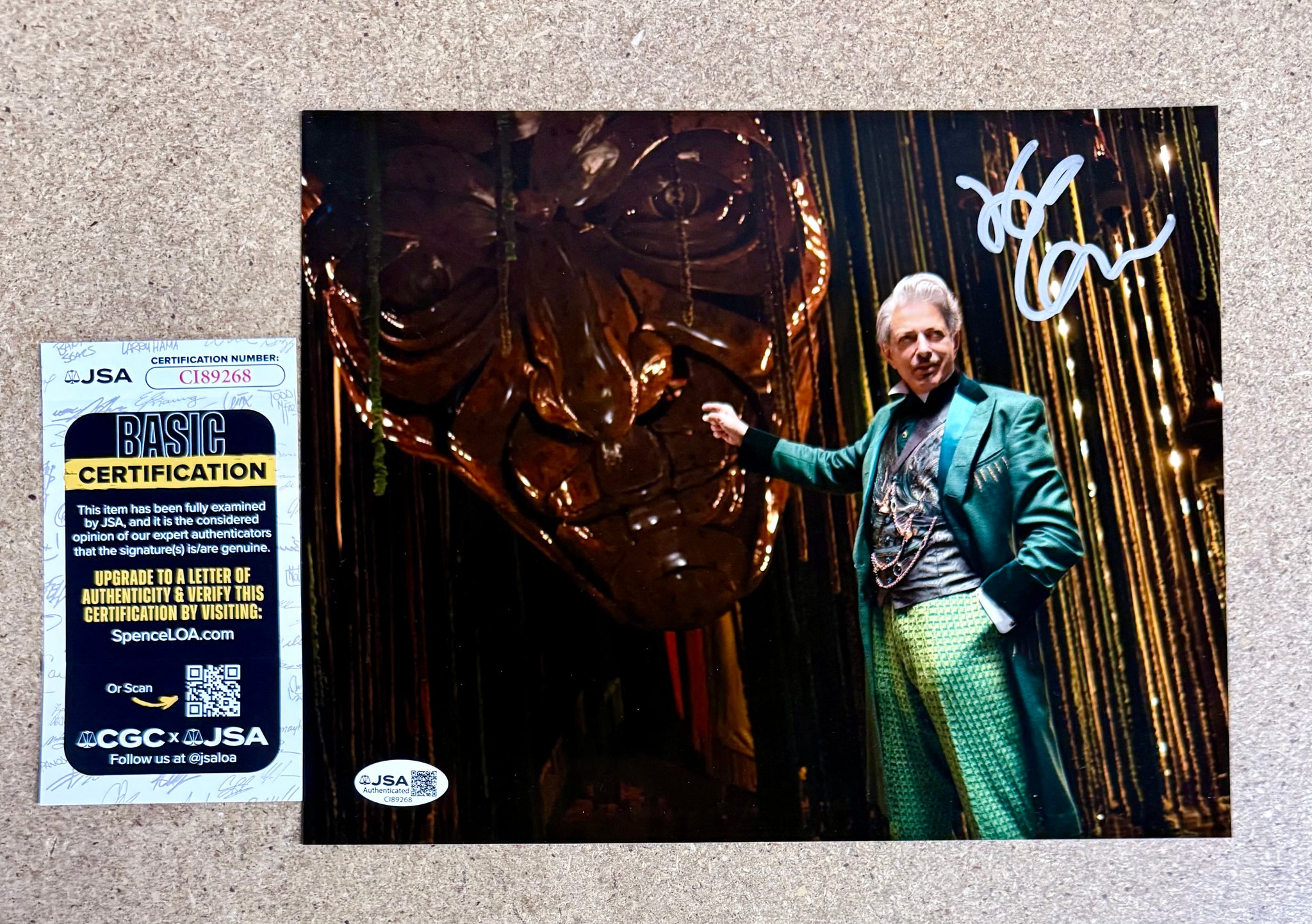 Awesome signed photo from Jeff Goldblum, complete with JSA authentication. Clean signature and perfect for any Jurassic Park or Goldblum fan.