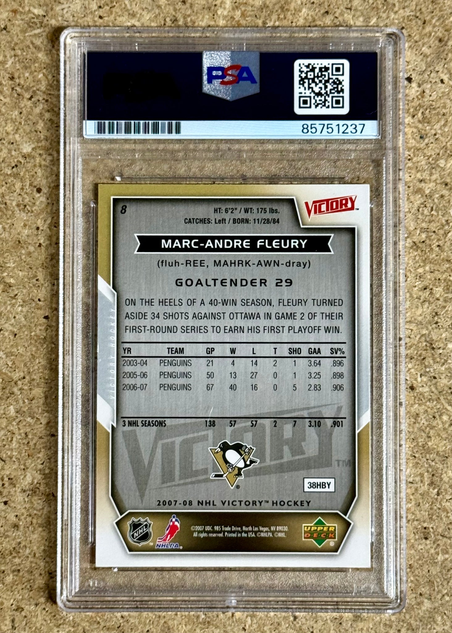 Marc-Andre Fleury Signed 2007 Victory NHL Pittsburgh Penguins Card PSA/DNA Slab