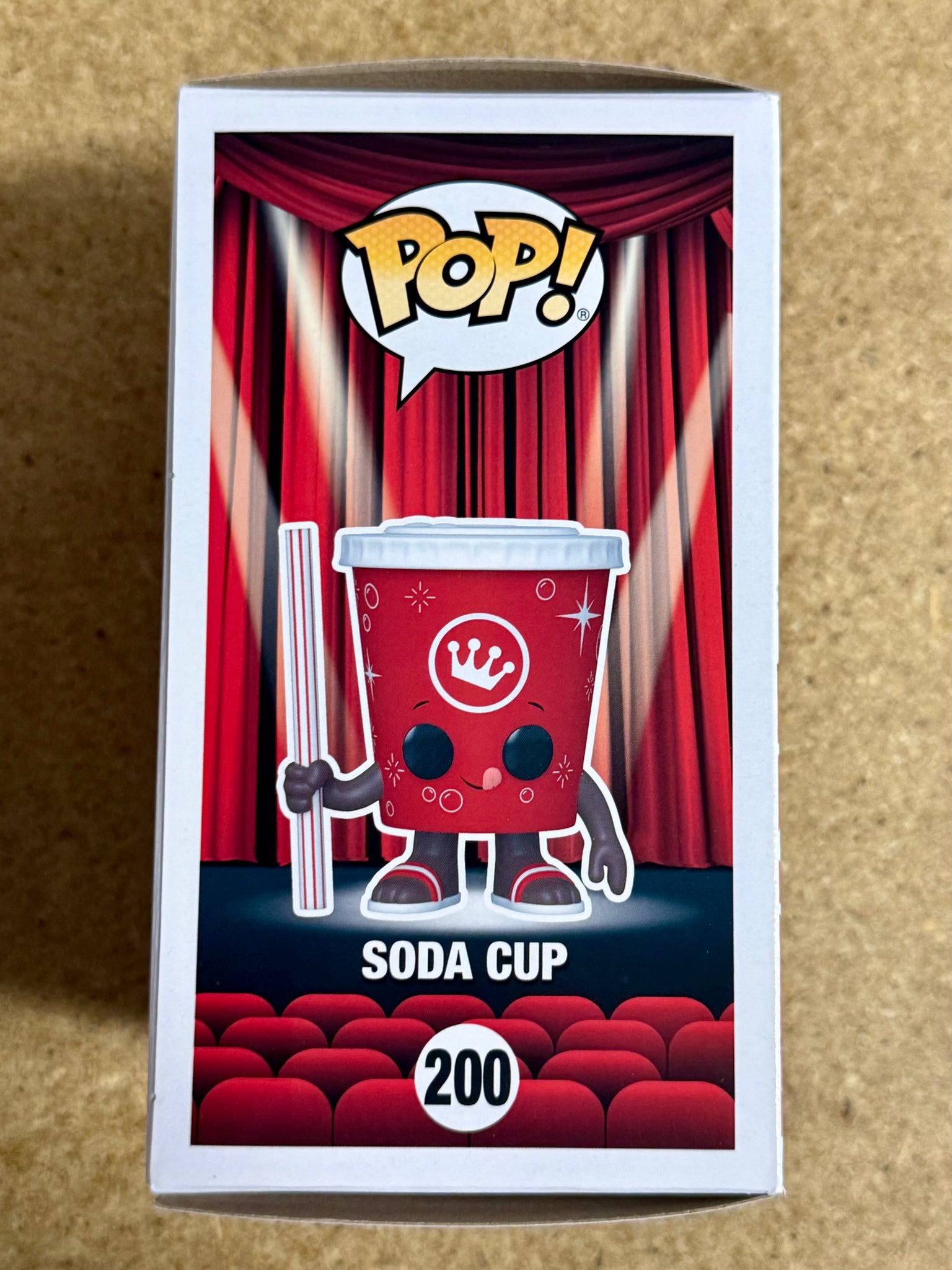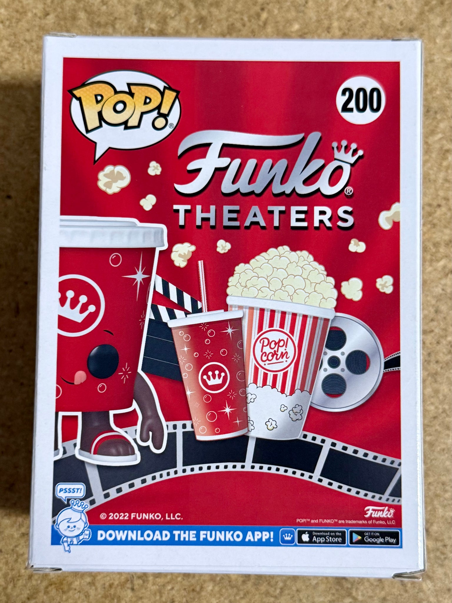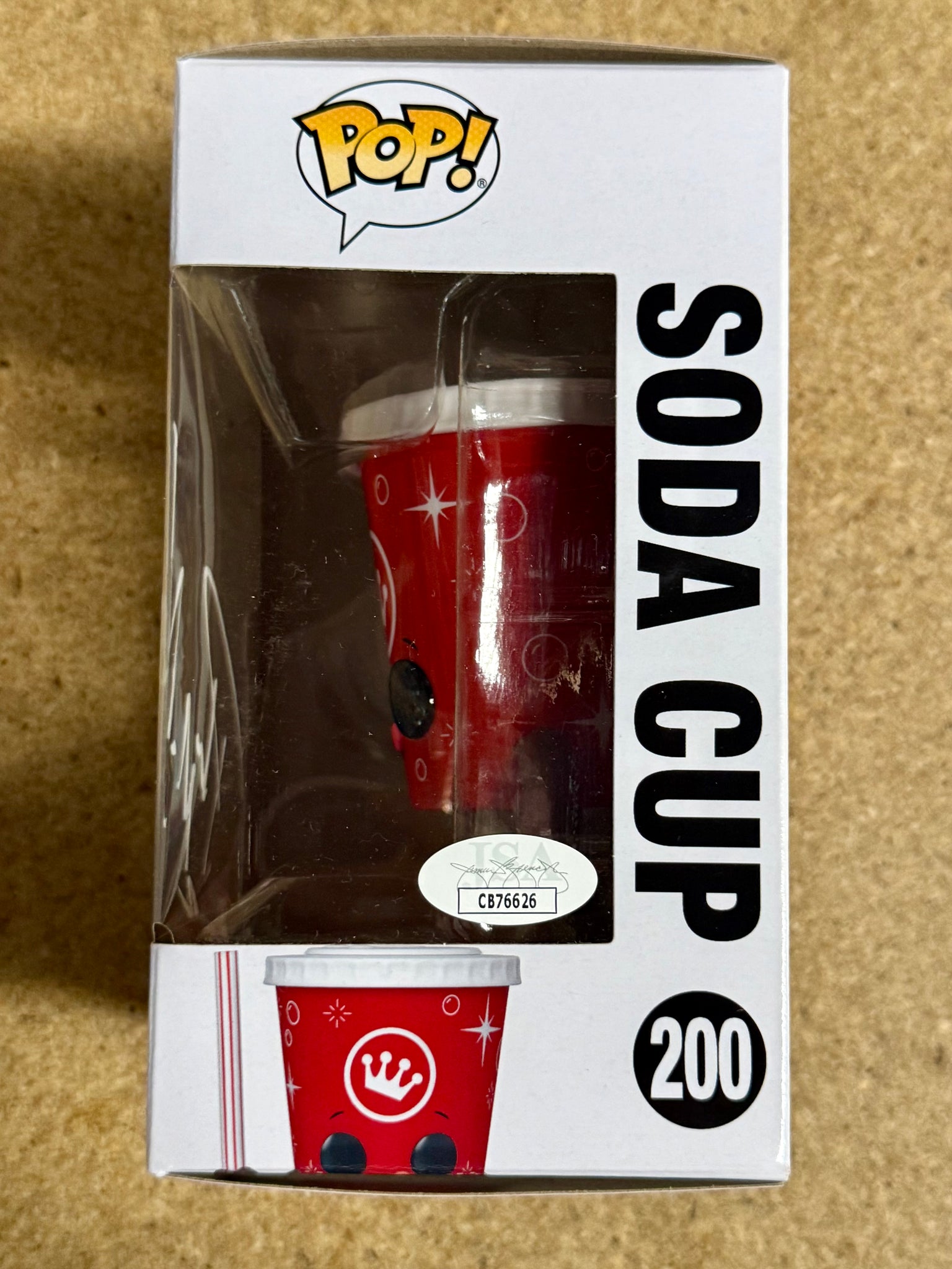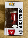 The product is a Pat McAfee signed movie theater soda cup Funko Pop! #200 from the Pop! Movies collection. This vinyl figure features the character of a soda cup and comes in its original packaging from 2022.