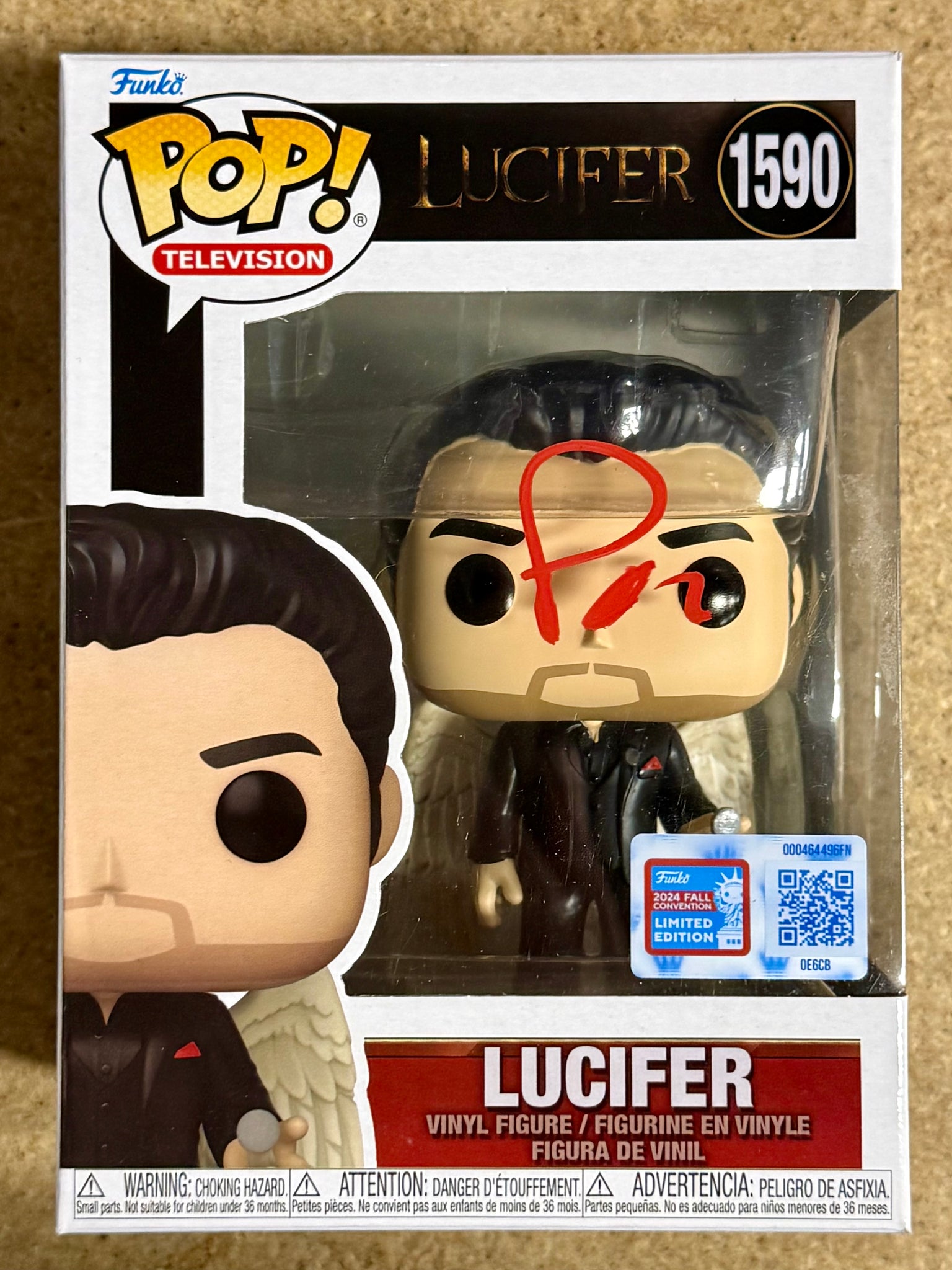 This exclusive Funko Pop! vinyl figure of Lucifer, signed by Tom Ellis himself, is a must-have for any fan of the hit TV show. This limited edition item was only available at the New York Comic Con fall con, and comes with autograph authentication from James Spence Authentication (JSA).