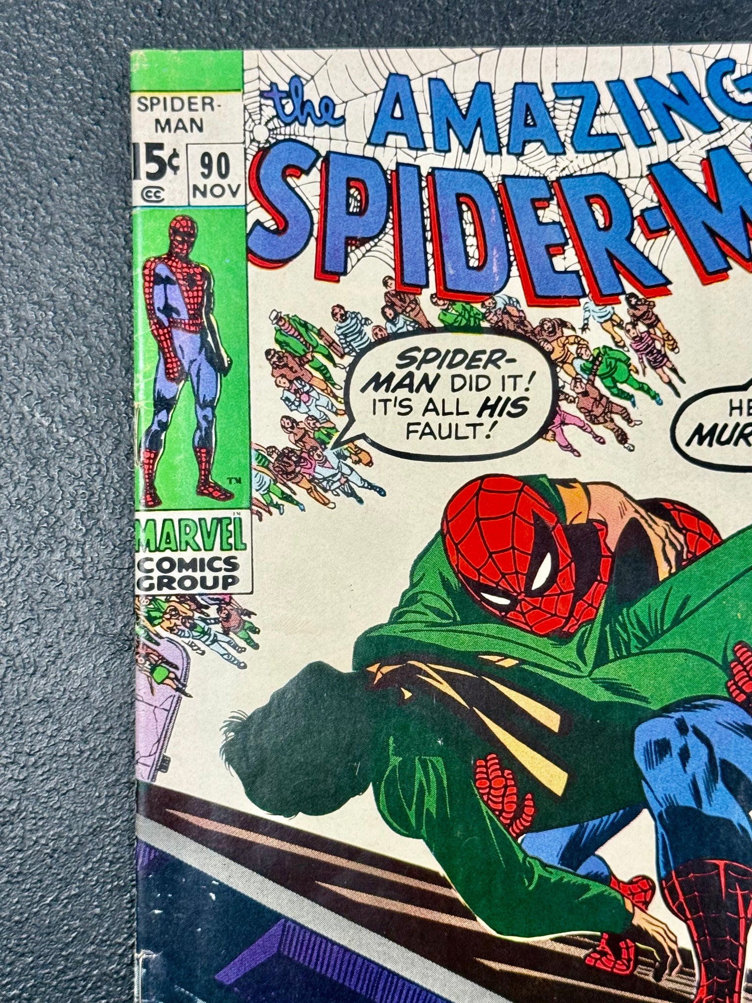 Up for sale is Amazing Spider-Man #90, a Bronze Age key issue featuring the dramatic death of Captain George Stacy, a major moment in Spider-Man history.