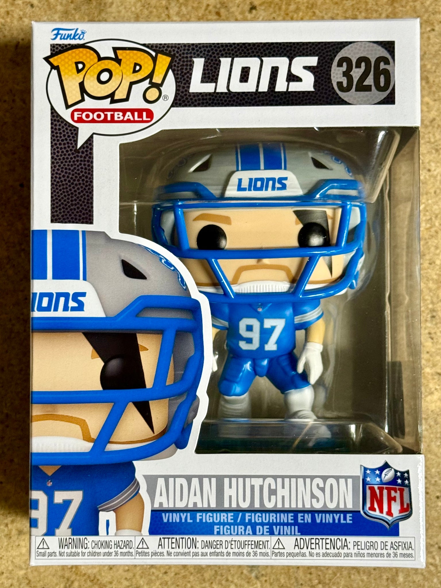 This listing is for Funko Pop! Football Aidan Hutchinson #326, featuring the NFL Detroit Lions defensive end. Released as part of Funko’s 2026 Football lineup, this figure highlights Hutchinson, one of the league’s top young defensive stars, making it a must-have for Lions fans and football collectors alike.