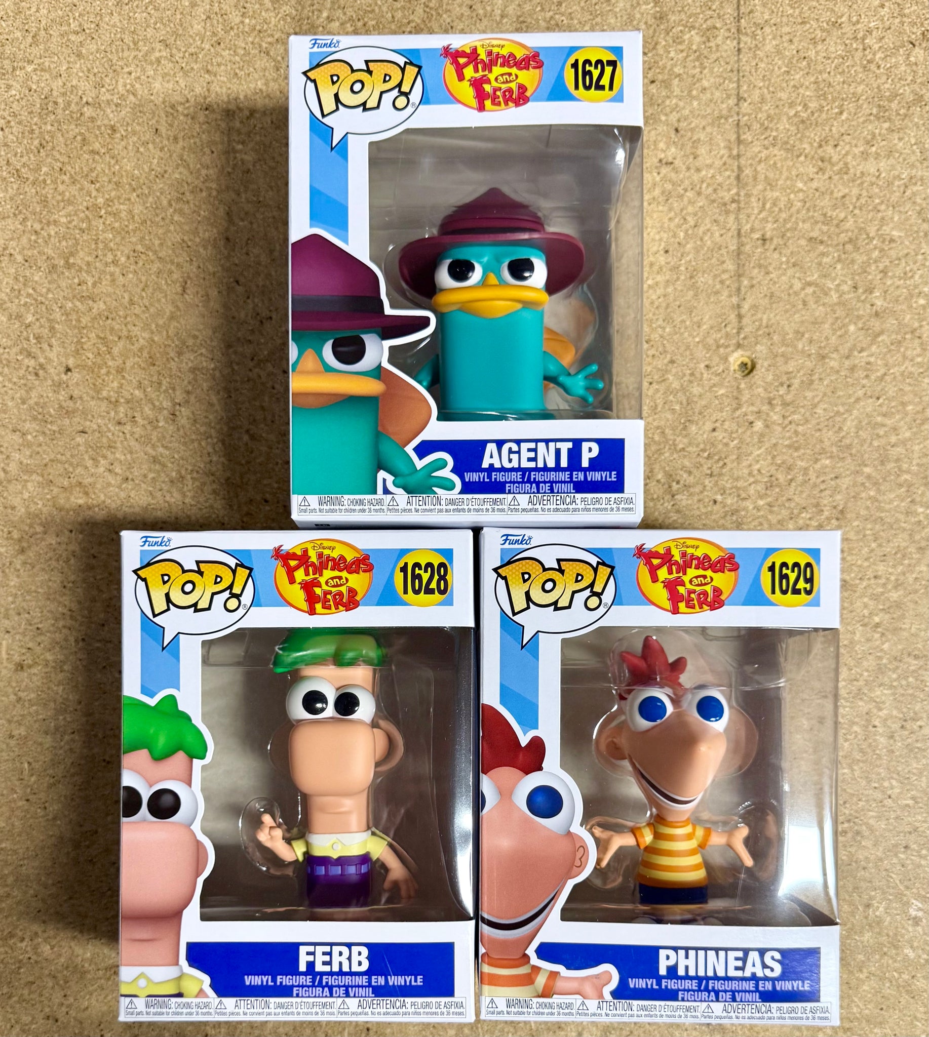 Funko Pop! Disney Phineas & Ferb #1628 #1629 & Agent P #1627 Set of 3