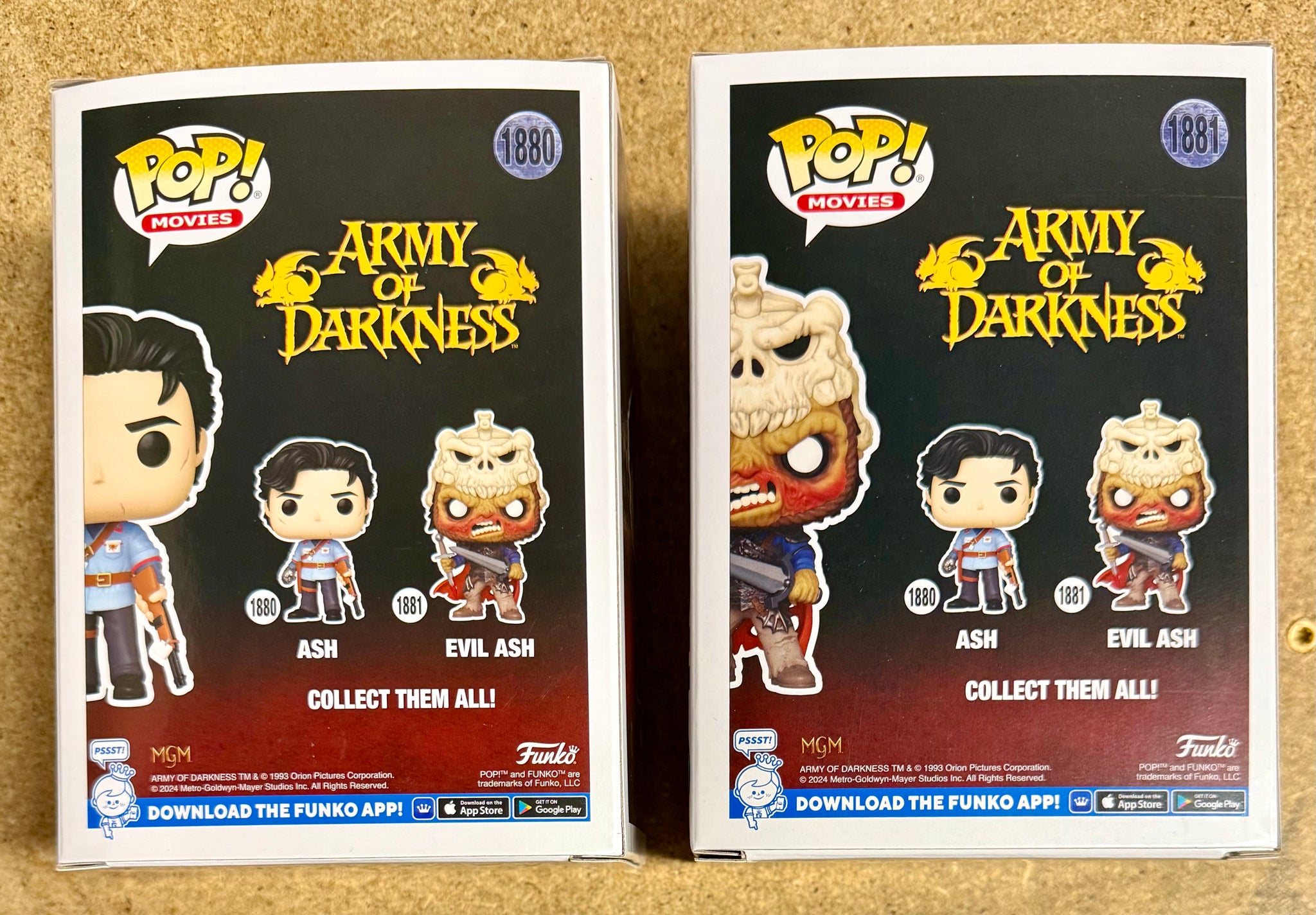 This listing is for Funko Pop! Movies Ash & Evil Ash #1880 and #1881 (2024) from the cult-classic film Army of Darkness. This set of two features both Ash Williams and Evil Ash, capturing the iconic hero and his dark counterpart from the beloved Evil Dead franchise.