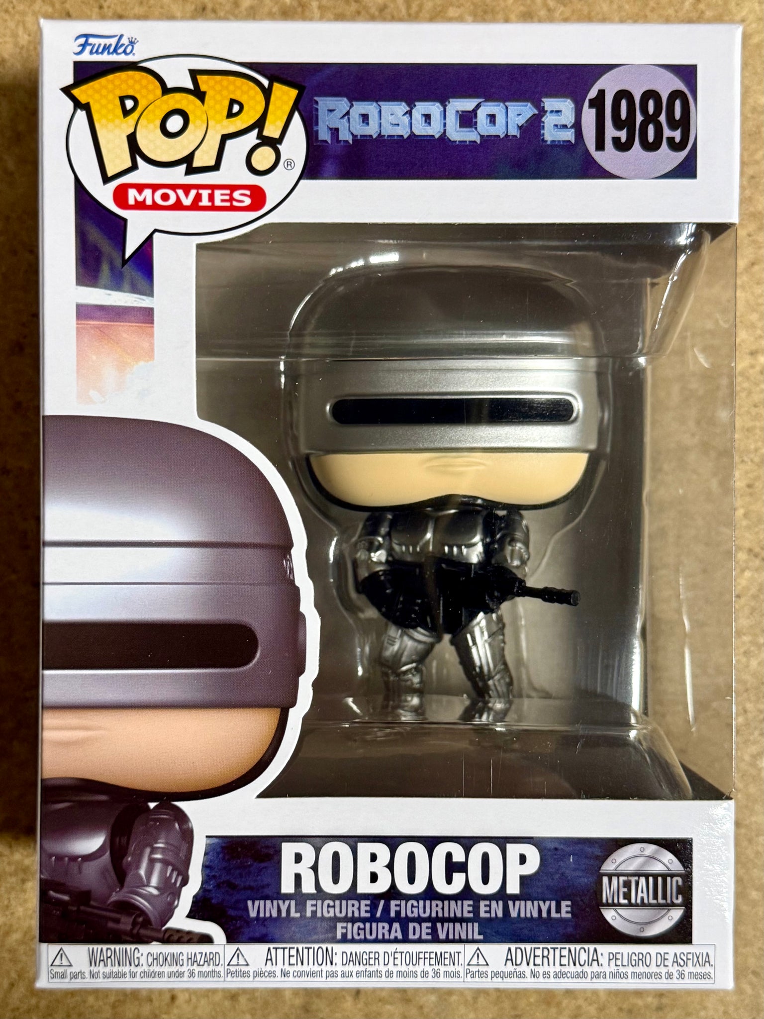 This listing is for Funko Pop! Movies Metallic RoboCop w/ Gun & Chase #1989 from RoboCop 2 (1990) — Set of 2. This bundle includes both the standard Metallic RoboCop and the highly sought-after Chase variant, making it a complete collector’s set.