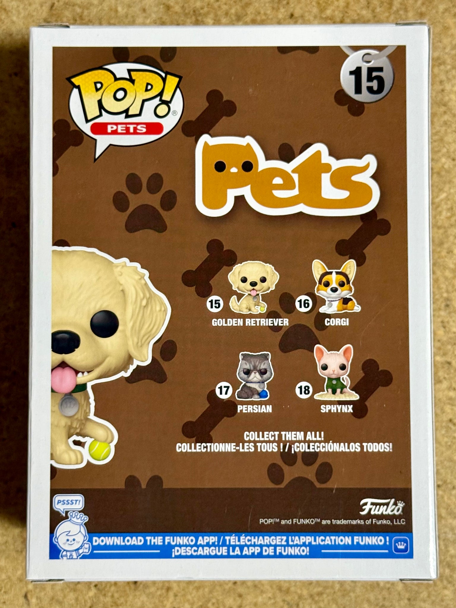 This listing is for Funko Pop! Pets Golden Retriever with Tennis Ball #15 (2026). This adorable figure captures the friendly and playful personality of a golden retriever, complete with a tennis ball, making it a perfect collectible for dog lovers and Funko Pop! Pets fans.