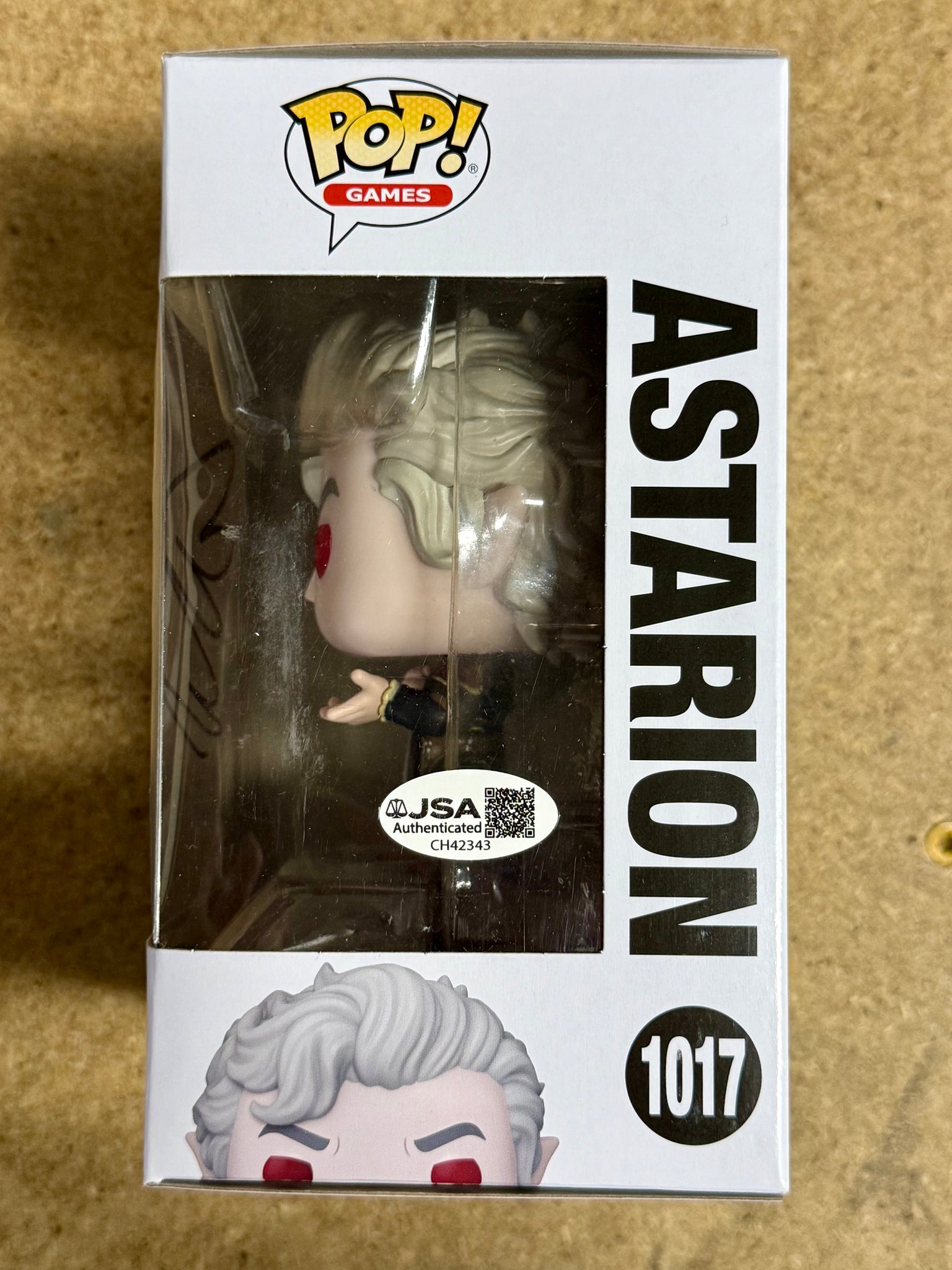 This product is a signed Funko Pop! vinyl figure of Astarion from the Baldur's Gate franchise. The autograph is verified by James Spence Authentication (JSA) and comes with a protector. This collectible item is part of the Pop! product line and is a must-have for fans of video games and the Baldur's Gate series. With its unique design and limited release year, this Astarion Funko Pop! is a valuable addition to any collector's display.