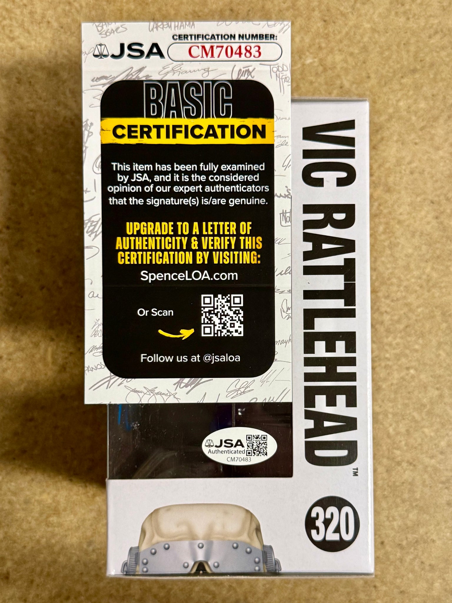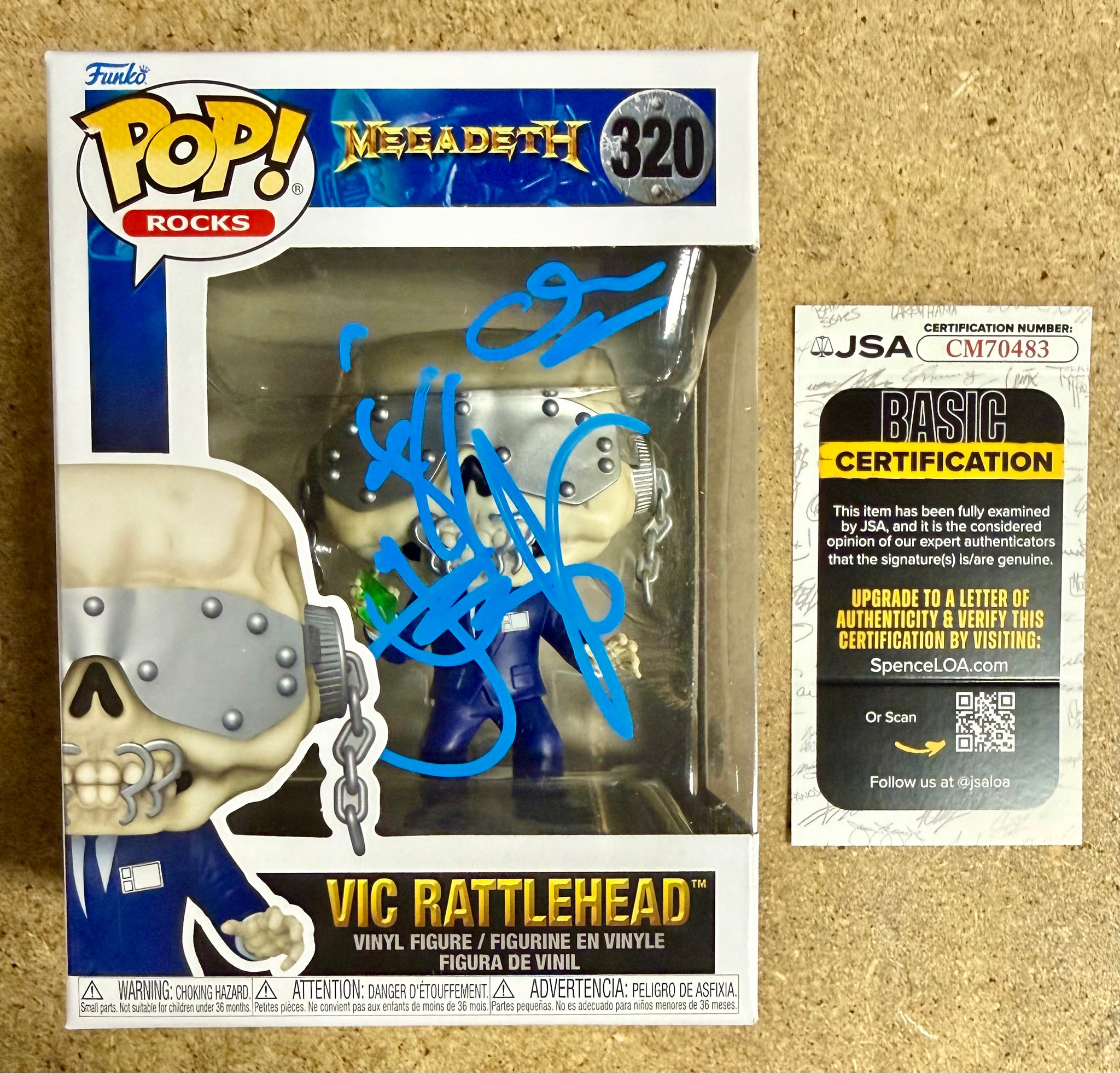 "David Ellefson \u0026 Jeff Young Signed Megadeth Vic Rattlehead Funko Pop! #320 With JSA COA"