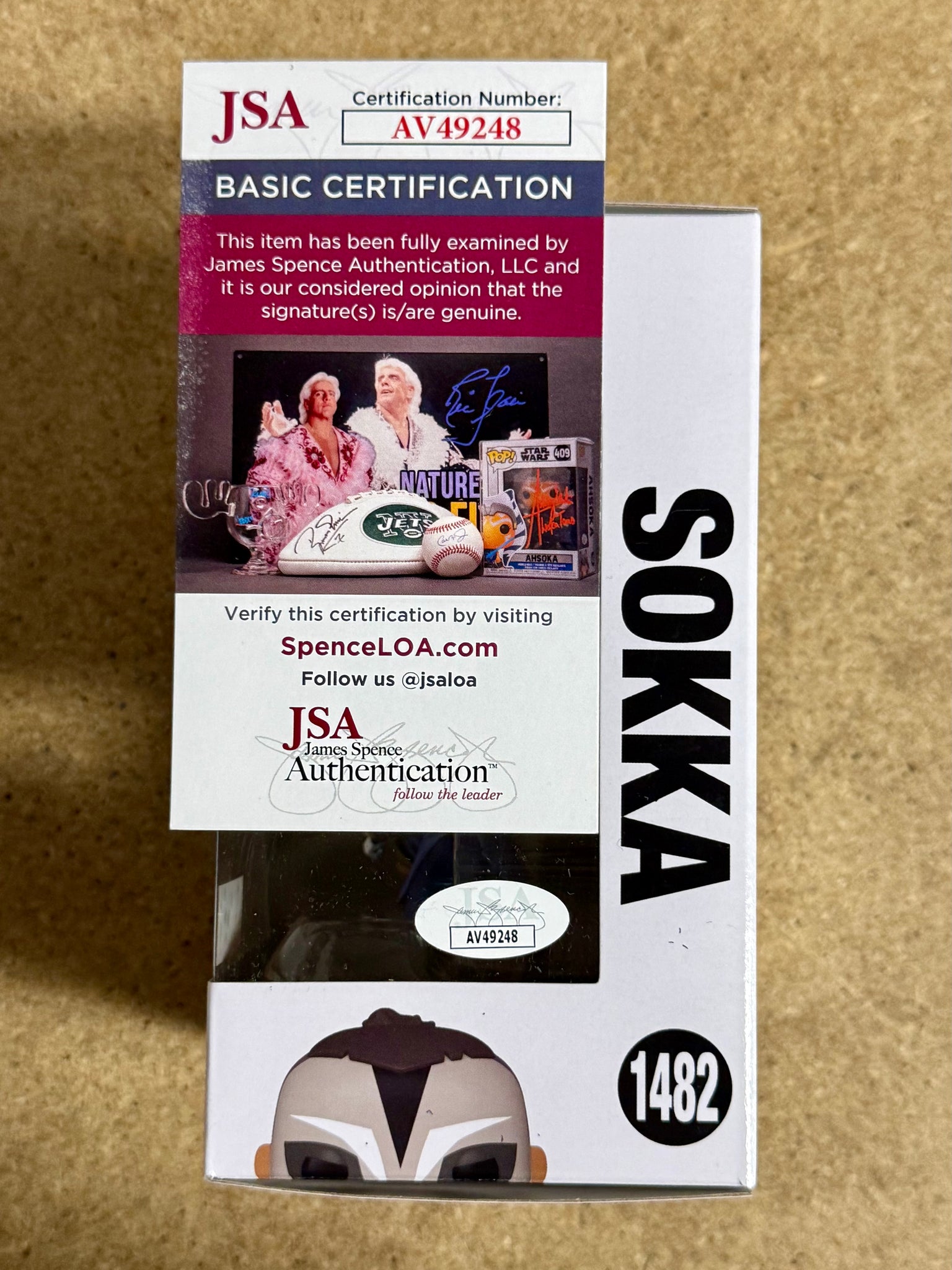 This listing is for an Ian Ousley Signed Sokka (Warrior Mask) Funko Pop! #1482 from Avatar: The Last Airbender, authenticated by James Spence Authentication.