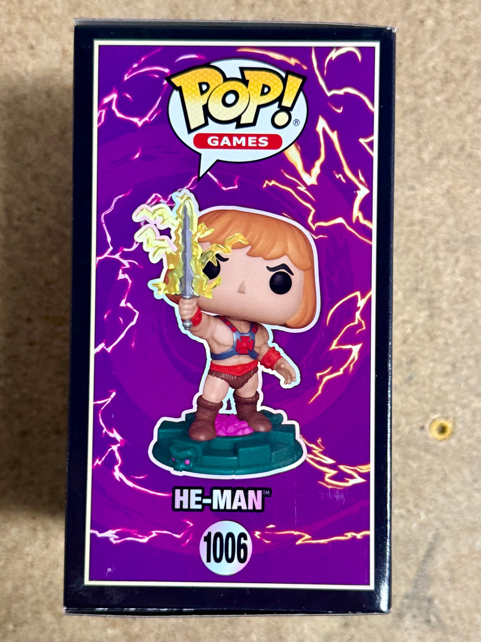 The product is a Tom Cook signed He-Man Masters of the Universe Funko Pop! #1006 with a JSA COA. This vinyl figure is part of the Pop! Vinyl product line by Funko, featuring the iconic character He-Man from the Masters of the Universe franchise.