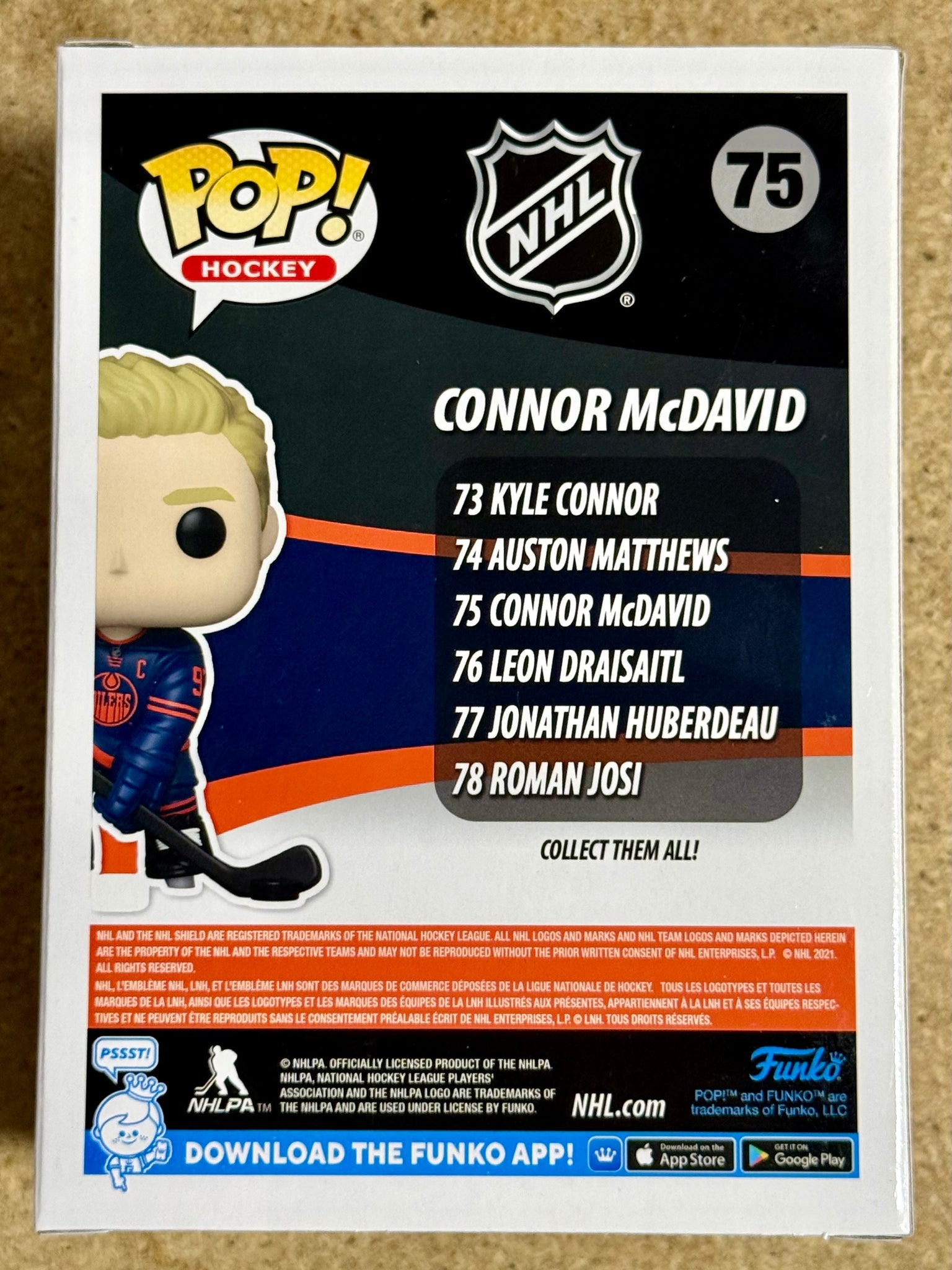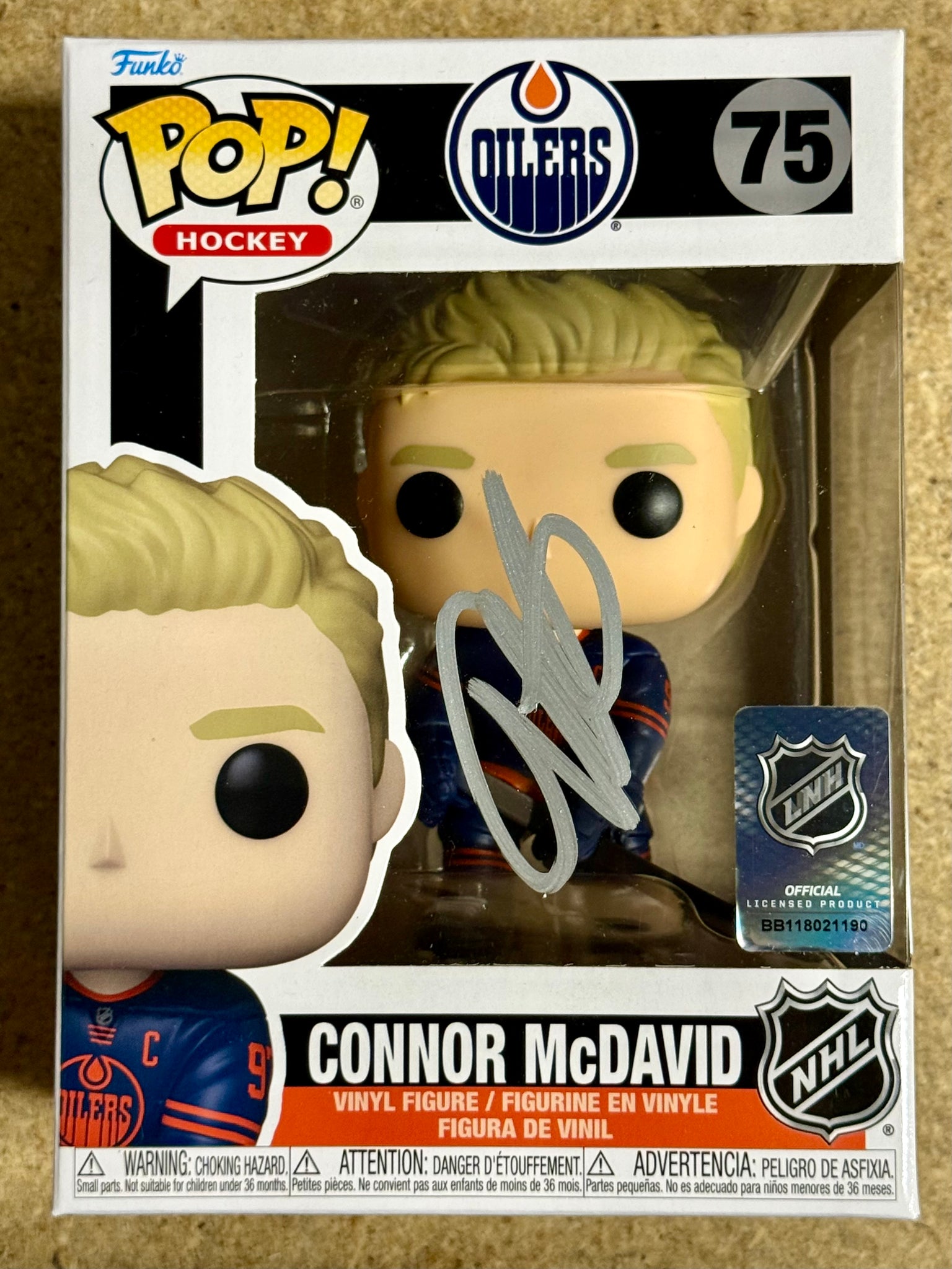 This Funko Pop! NHL #75 features Connor McDavid of the Edmonton Oilers (2021) and has been hand signed by McDavid, one of the most dominant and celebrated players of his generation. The autograph is bold and well placed, making this a standout piece for any hockey memorabilia or Funko Pop collection.