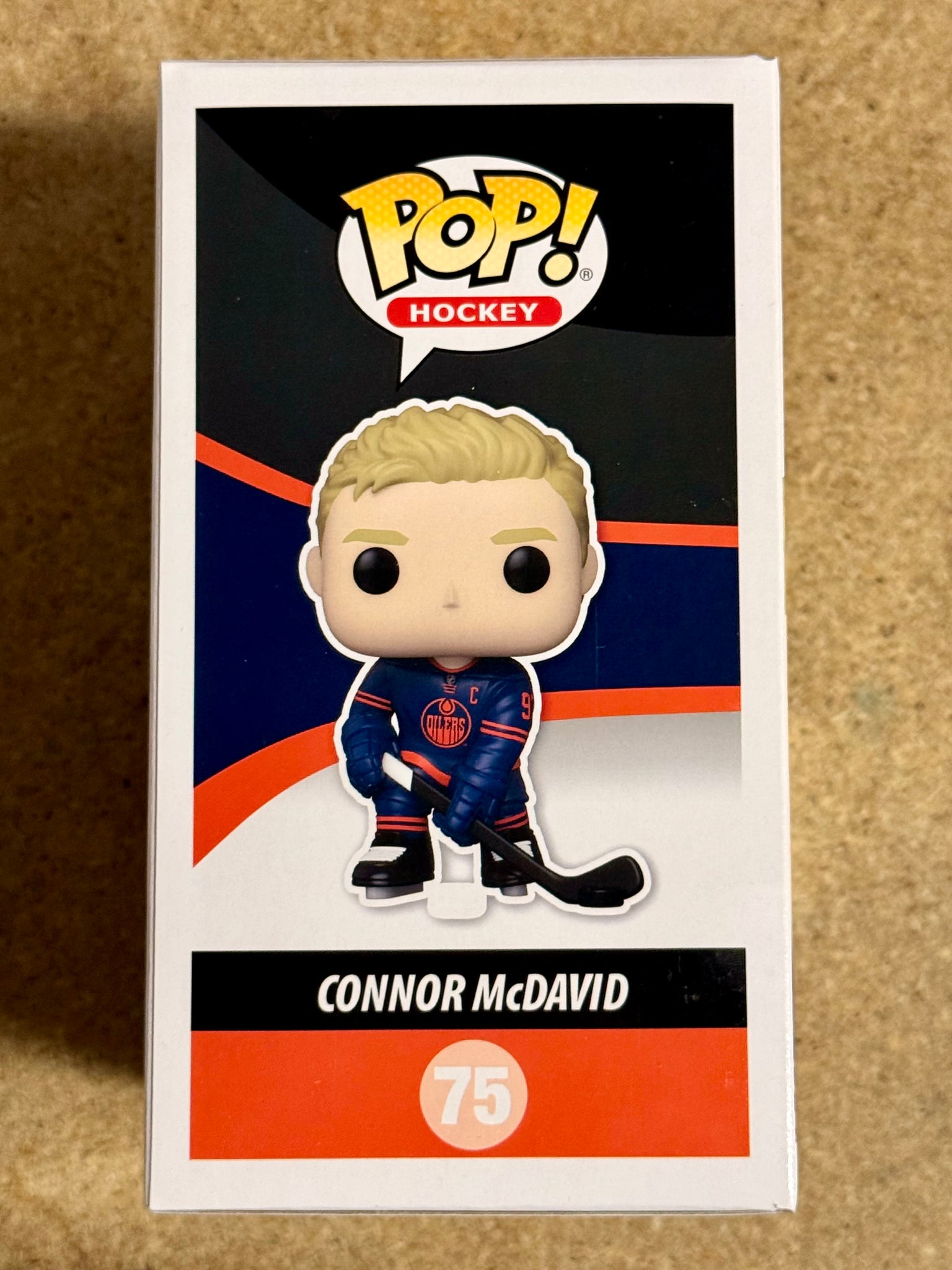 The Funko Pop comes in its original window box and is in excellent condition, ideal for display either in-box or out-of-box. As a perennial Hart Trophy winner and the face of the Edmonton Oilers, Connor McDavid memorabilia continues to carry strong demand and long-term collectible value.