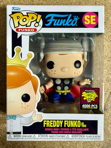 The Funko Pop! Freddy As Thor SE Blacklight Battle Fundays 2022 LE 4000 Exclusive is a limited edition vinyl figure featuring the popular character Freddy Funko in a unique Thor-inspired design.