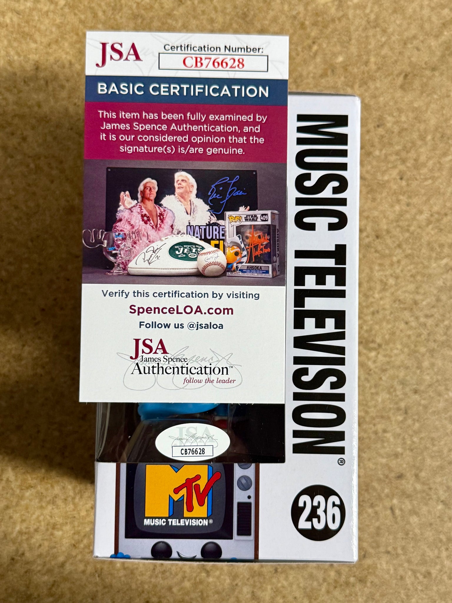 This product is a 2024 MTV Funko Pop #236 signed by musician Scooter Ward of the band Cold. The figure is made of vinyl and comes with a JSA COA for authentication.